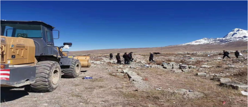 (清理現(xiàn)場日瓊布多轄區(qū)建筑垃圾圖)