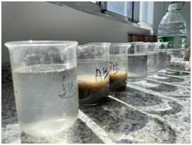 吉隆鎮(zhèn)污水處理廠化驗(yàn)員在進(jìn)水口、生化池、二沉池以及出水口四個(gè)點(diǎn)分別采集樣品。